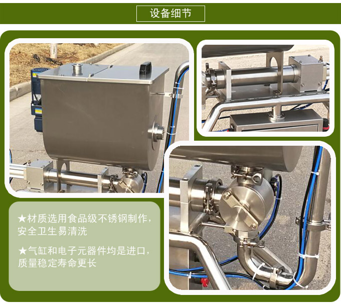 蝦滑灌裝機(jī)-魚(yú)滑灌裝機(jī)-牛肉滑灌裝機(jī)是星火專利產(chǎn)品,采用全不銹鋼制作,方便清潔,衛(wèi)生安全,該機(jī)設(shè)計(jì)合理,蝦滑灌裝機(jī)材質(zhì)優(yōu)良,與物料接觸部件采用304不銹鋼加工制作,符合GMP認(rèn)證要求。具有防腐、能較好的適應(yīng)潮濕等惡劣環(huán)境。專門針對(duì)粘稠物料尤其適合含有顆粒的豆醬、魚(yú)滑、蝦滑、墨魚(yú)滑、牛肉滑等產(chǎn)品,采用進(jìn)口氣缸、電器元件,質(zhì)量更穩(wěn)定,配置靈活的腳踏開(kāi)關(guān)和自動(dòng)灌裝功能,急停開(kāi)關(guān)等